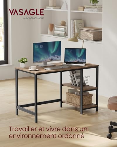 Bureau d'ordinateur moderne VASAGLE, idéal pour télétravailleurs, offrant un espace de travail spacieux et modulable.
